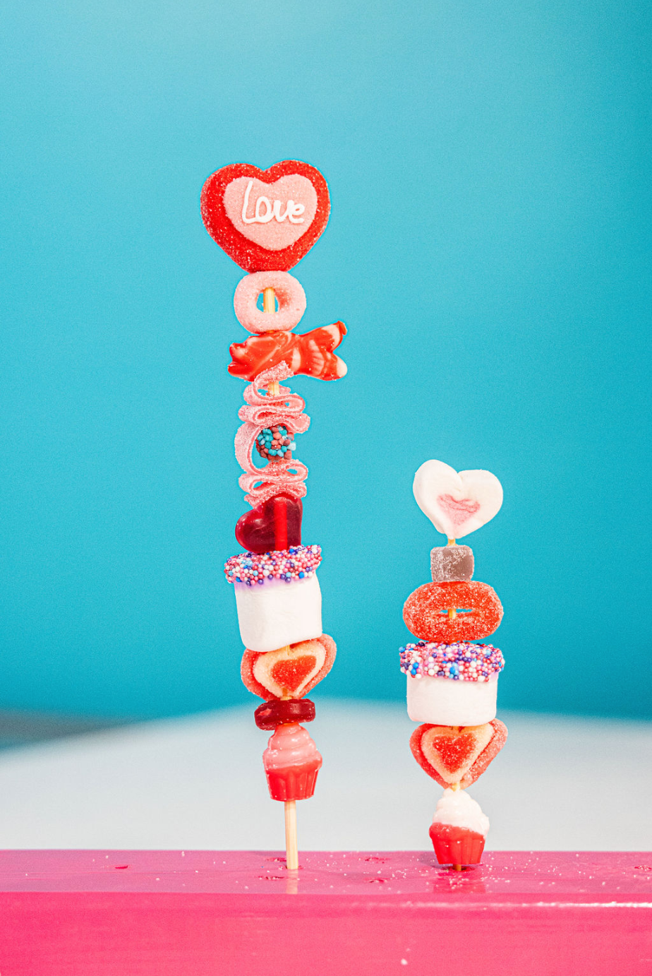 Fall in love at first bite! Our Valentine’s-themed candy kabob is a playful mix of heart-shaped gummies, marshmallows, and sweet, chewy treats stacked on a skewer — the perfect way to say “I love you”. Choose from our Standard option for a simple, sweet treat, or go all out with the Deluxe version, featuring extra candy, extra sweetness, and extra love! A fun, giftable treat for everyone you adore!